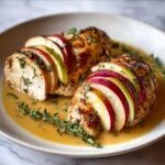 Apple & Brie Stuffed Chicken is a delightful combination of tender chicken breasts stuffed with creamy Brie cheese, sautéed apples, fresh thyme, and a hint of Dijon mustard. Pan-seared to a golden brown and then baked in a savory apple cider and chicken broth sauce, this recipe balances sweet and savory flavors for a comforting yet elegant meal.