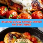 This Balsamic Glazed Caprese Chicken recipe features juicy chicken breasts pan-seared to perfection and topped with a tangy balsamic reduction, fresh cherry tomatoes, melted mozzarella, and fragrant basil. It’s a quick and elegant dish perfect for weeknight dinners or entertaining guests, combining classic Italian flavors in a simple skillet meal.