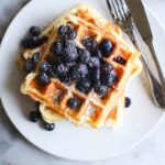 - Serve hot: Serve the waffles immediately as they are crispiest hot out of the waffle iron. Top with extra blueberries and maple syrup, or your favorite toppings, for a perfect meal.