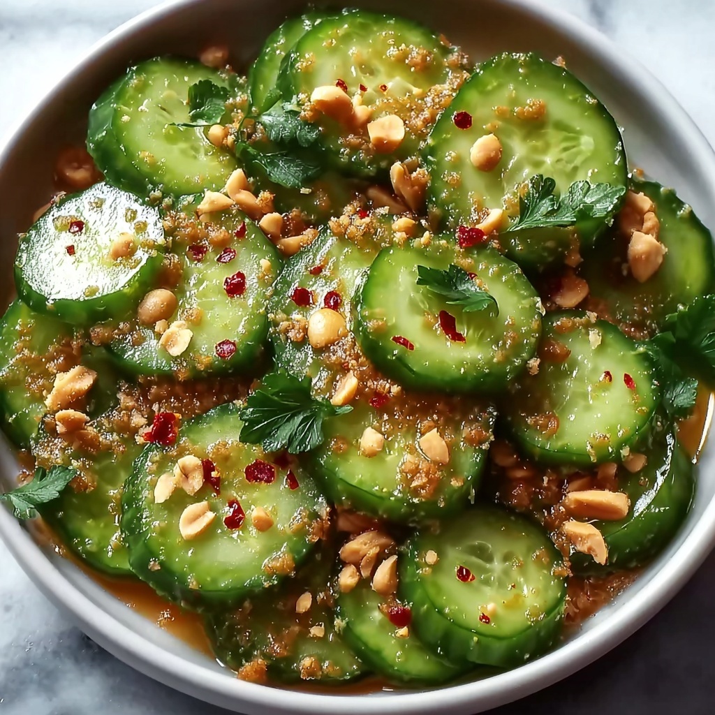 Bold and Spicy Cucumbers in Peanut Sauce is a refreshing and crunchy appetizer featuring firm cucumbers tossed in a creamy, tangy peanut sauce with a kick of chili flakes. Perfect for a quick, no-cook dish that combines savory, sweet, and spicy flavors for a delicious treat you’ll crave.