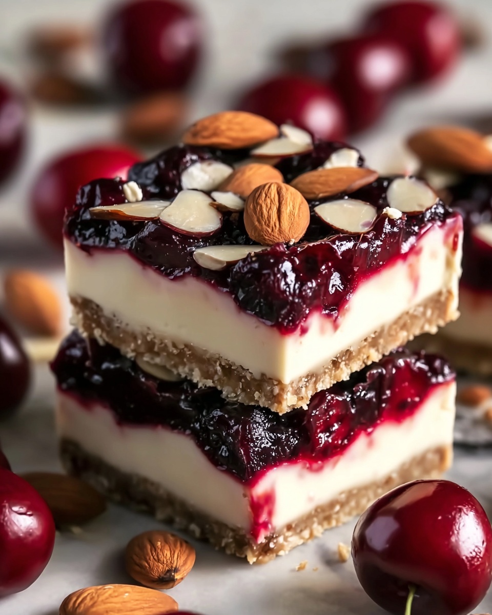 For an added touch of elegance and flavor, sprinkle a few extra sliced almonds or a handful of fresh cherries on top. A light dusting of powdered sugar can also highlight the bars’ natural sweetness and make them look irresistible.