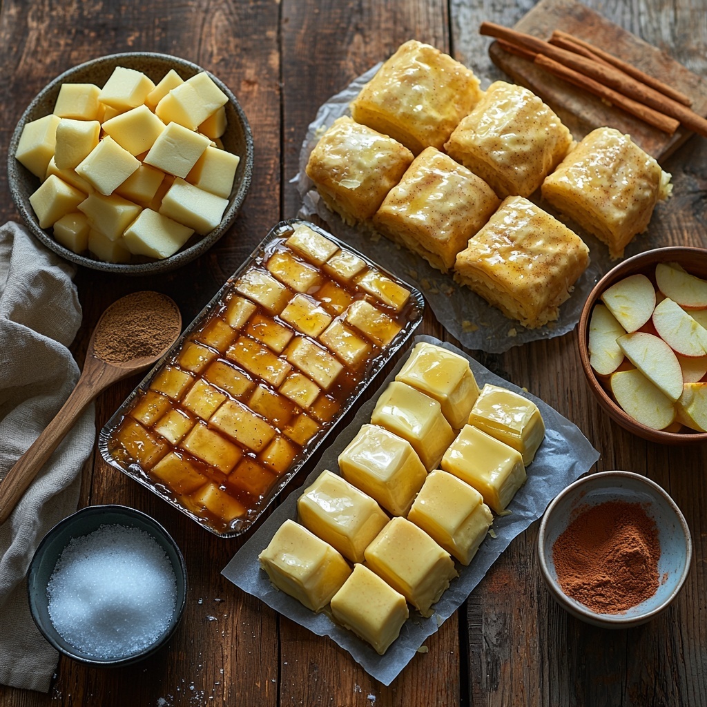 - Prepare for Baking: Place the assembled cinnamon roll apple pies in a greased baking dish. Dot the tops with butter for added richness.