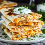 This delicious chicken quesadilla recipe combines tender shredded chicken, sautéed vegetables, and melted cheese all wrapped in warm, crispy flour tortillas. Perfect for a quick weeknight dinner or a satisfying comfort food snack, these quesadillas offer a flavorful blend of cumin, chili powder, and fresh ingredients that everyone will love.
