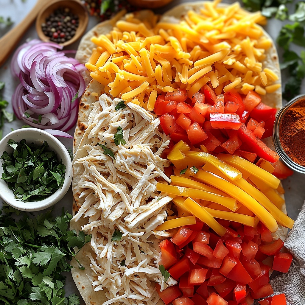 Putting together this dish is easier than you might think, and the ingredients are straightforward but pack a punch in flavor and texture. From the juicy shredded chicken to the zing of spices and crisp veggies, each component is essential to making a perfect quesadilla that feels fresh and comforting.