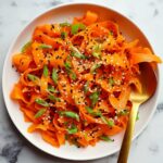 A fresh and vibrant carrot salad tossed with a tangy Asian-inspired dressing featuring rice vinegar, soy sauce, honey, and a hint of chili flakes. This salad is quick to prepare, gluten-free adaptable, and perfect as a light side dish or healthy snack.