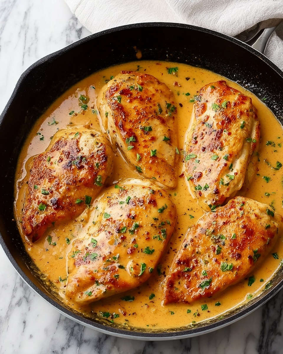 Return the chicken cutlets to the skillet, nestling them into the sauce. Let everything simmer gently for about 5 minutes so the chicken cooks through fully while the sauce thickens into a luscious coating. Take a quick taste and adjust the salt and pepper if needed, as the cream and spices come together to create a perfectly balanced dish.