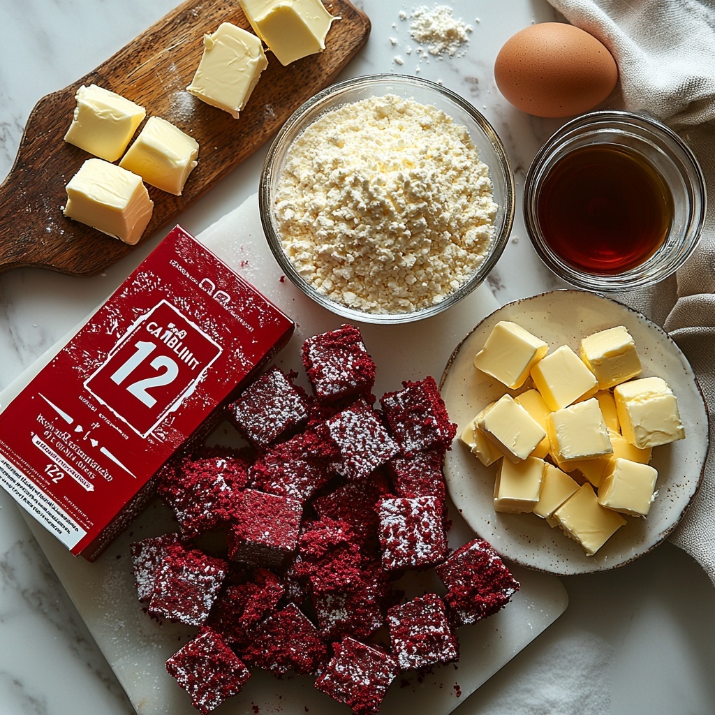 • 1 box red velvet cake mix: The base of the cake brings that iconic red hue and tender crumb.