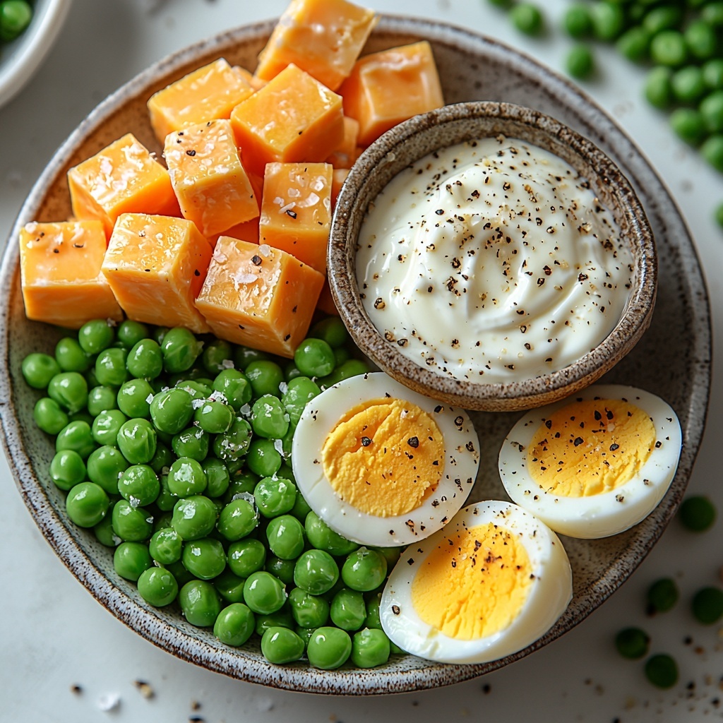 This Easy Pea Salad is a fresh, creamy side dish perfect for potlucks, picnics, or quick family meals. Made with a tangy dressing of mayonnaise and Greek yogurt, this salad combines sweet peas, sharp cheddar, crunchy red onion, and optional diced hard-boiled egg for added protein and texture. It’s a no-cook, refrigerator-chilled dish that’s both simple to prepare and delicious.