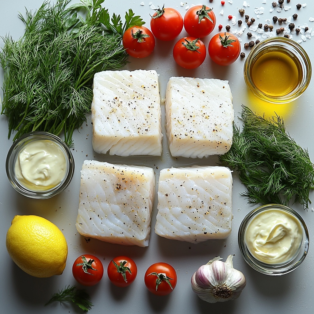 For a more elevated presentation, serve the cod and tomatoes over a bed of sautéed spinach or grill some lemon halves alongside for guests to squeeze. You can also swirl the creamy dill sauce artistically on the plate before laying down the fish, turning your meal into a work of art.