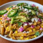 This Healthy Street Corn Pasta Salad combines wholesome whole wheat pasta with charred corn, creamy avocado, and a zesty lime and chili yogurt dressing. Inspired by the flavors of Mexican street corn, this salad is fresh, flavorful, and perfect as a light meal or a side dish.