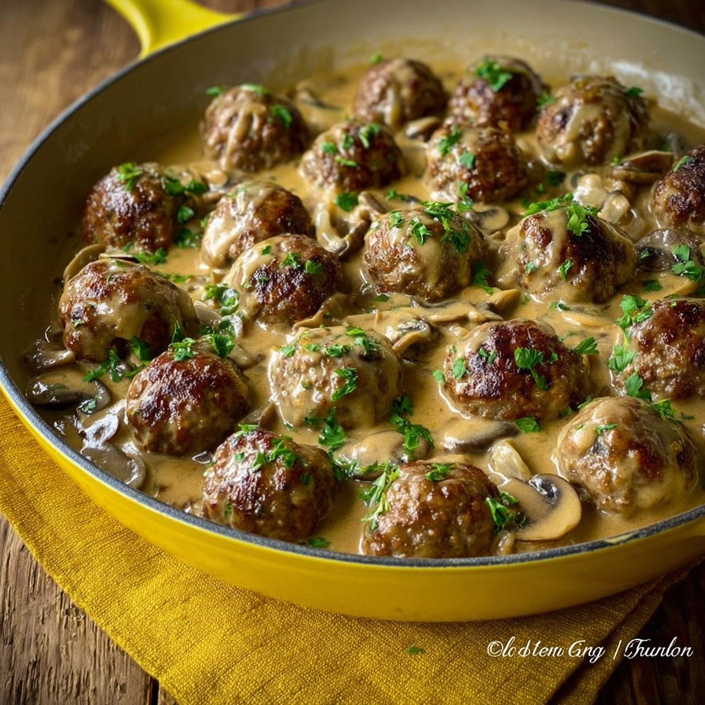 This Homemade Meatball Stroganoff recipe features tender meatballs made from a blend of ground beef and pork, cooked in a creamy mushroom and sour cream sauce, served over hearty egg noodles. A comforting and flavorful twist on classic stroganoff that’s perfect for a family dinner.