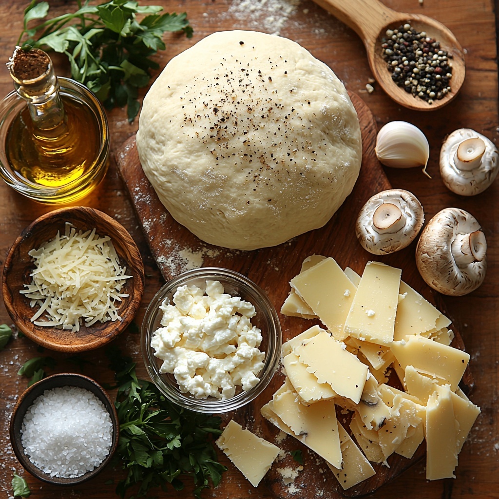 This recipe uses a handful of straightforward, kitchen-friendly ingredients, each playing a crucial role in building layers of flavor and texture. From the creamy ricotta to the earthy mushrooms and the aromatic herbs, every element complements the others to create a pizza that’s as visually appealing as it is delicious.