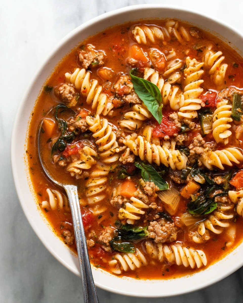 Serve this Italian Sausage and Pasta Soup Recipe in rustic bowls that show off its vibrant colors, or try mini bread bowls for a charming twist. You could also garnish with a sprinkle of toasted pine nuts or a spoonful of ricotta for added texture. For dinner parties, ladle the soup into hollowed-out tomatoes to impress your guests with a creative touch.