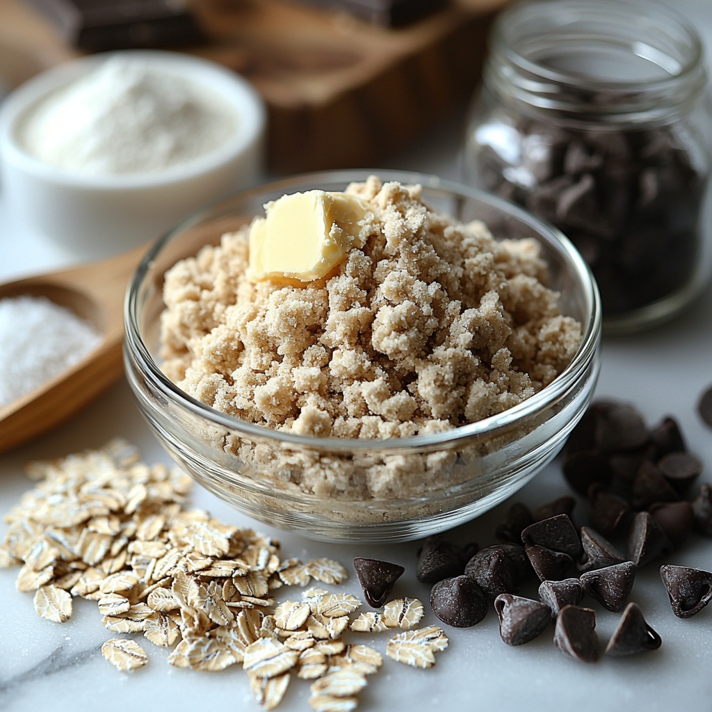 3. Combine Dry Ingredients: Add old-fashioned rolled oats, all-purpose flour, and salt to the butter and sugar mixture. Stir until thoroughly combined for an even batter texture.