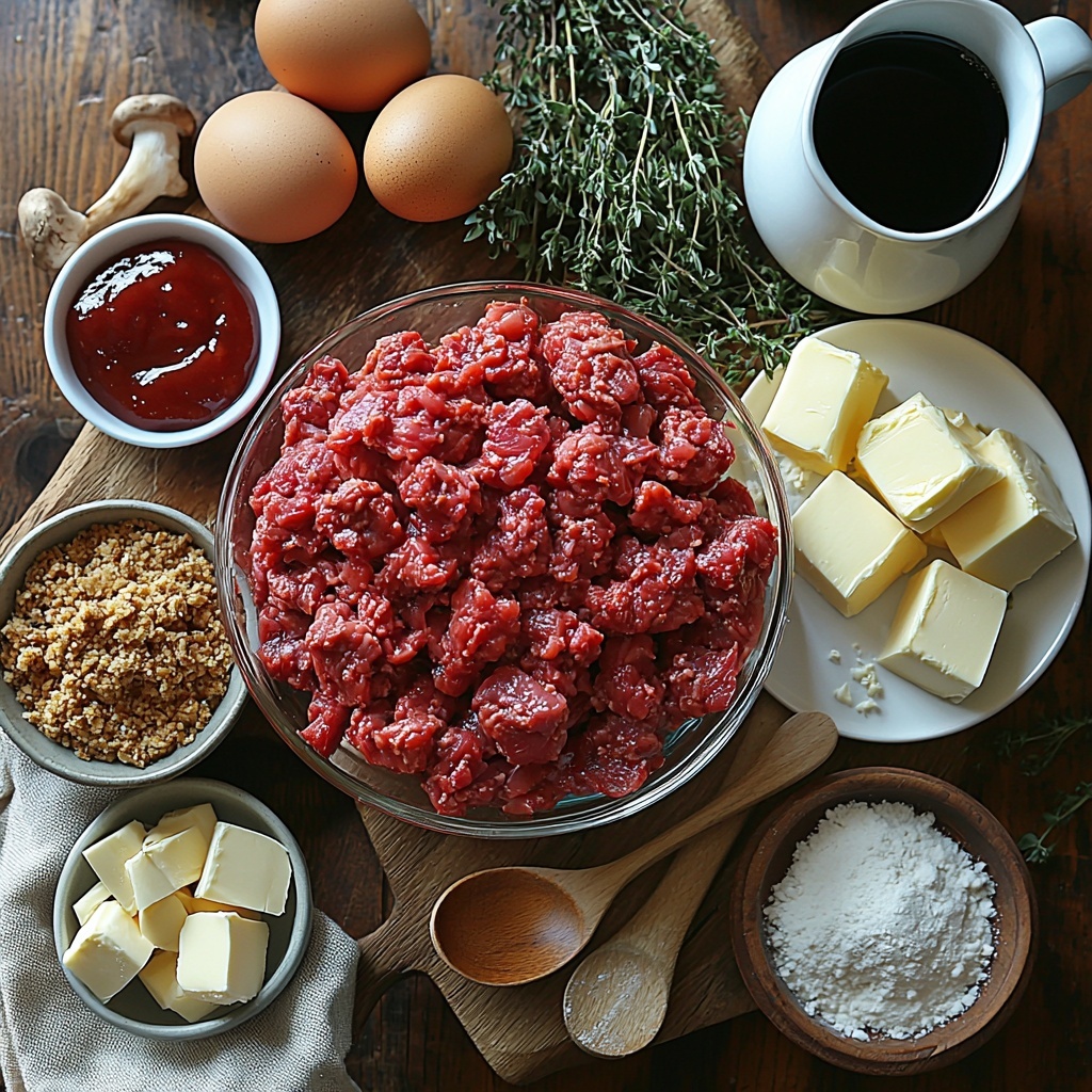 This Meatloaf with Mushroom Gravy Recipe shines because of its straightforward, wholesome ingredients. Each one plays an essential role, from adding moisture and seasoning to bringing earthy depth and creamy richness.
