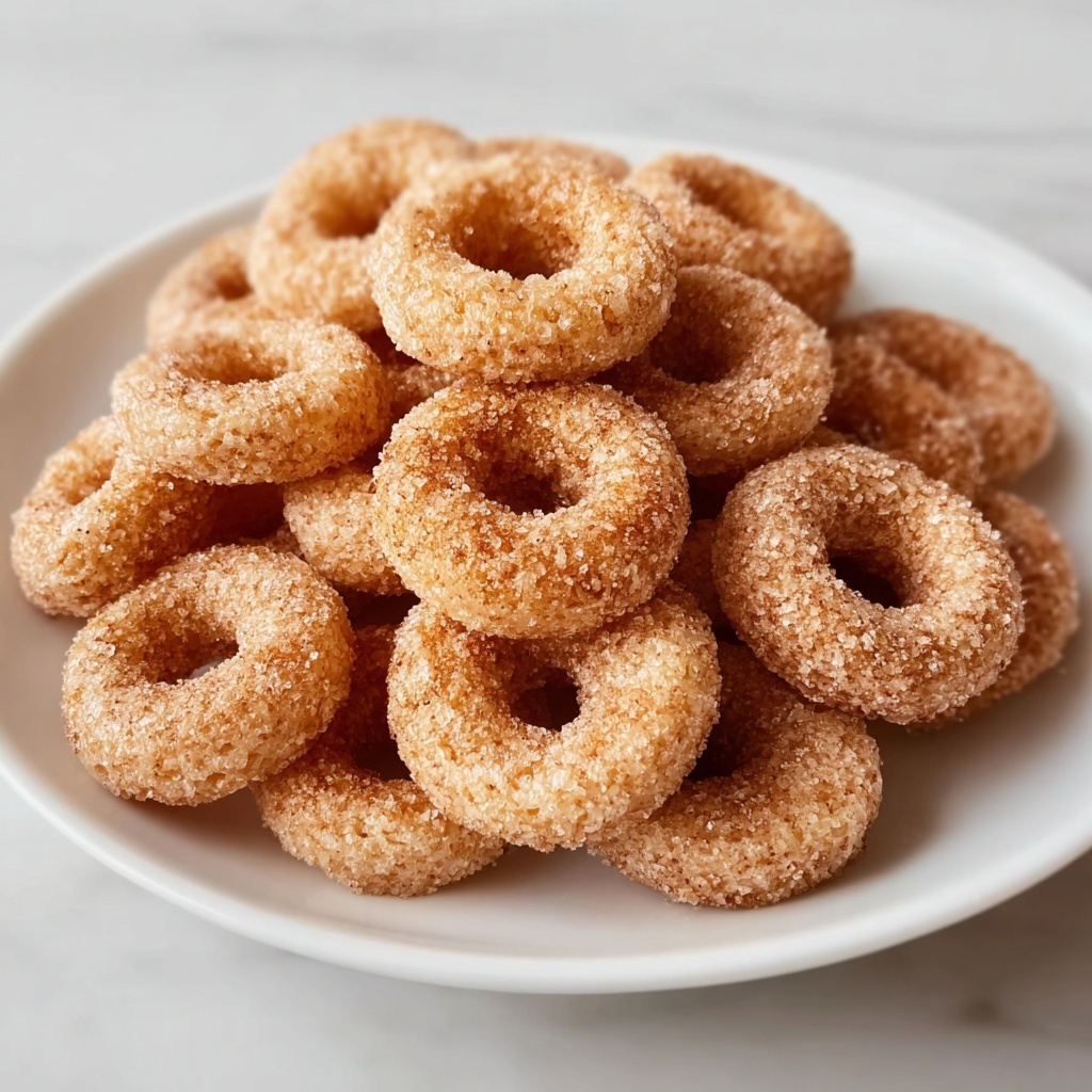 A delightful recipe for Mini Doughnut Hot Buttered Toasted Cheerios that combines crispy toasted cereal coated in a buttery cinnamon sugar glaze, perfect for a sweet snack or breakfast treat with an optional chocolate chip twist.