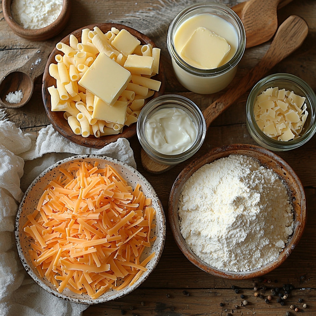 These ingredients are straightforward and pantry-friendly, yet they each play a crucial role in creating the perfect texture, flavor, and color for your mac and cheese masterpiece. From the creamy dairy to the sharp cheeses and subtle seasoning, every element works in harmony.