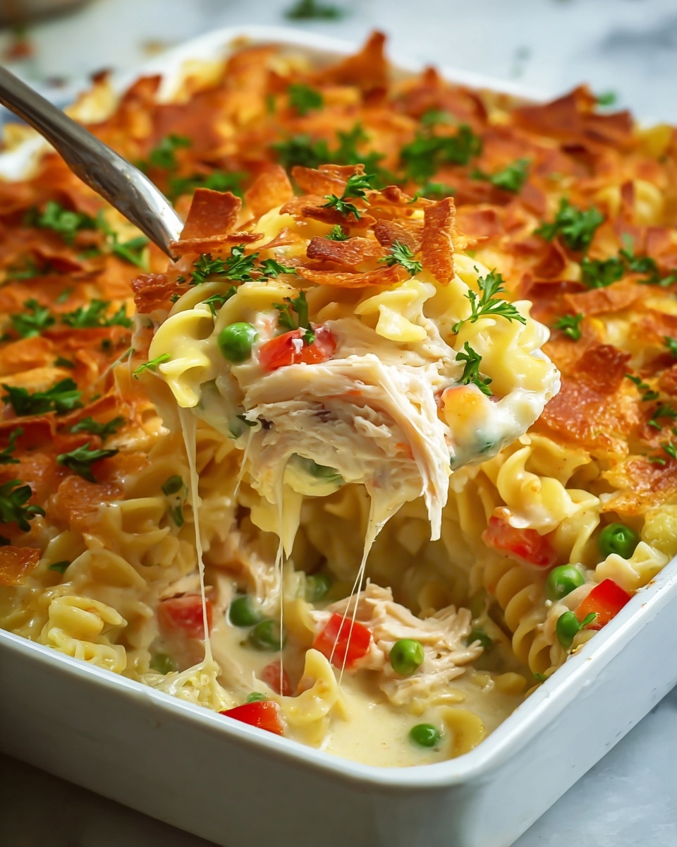 Fresh chopped parsley is a classic and simple garnish for this casserole, bringing a hint of herbal brightness. You can also sprinkle on a bit of extra sharp cheddar cheese or even some crispy bacon bits if you want to elevate the dish with a savory crunch.