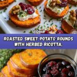 - Assemble Rounds: Once the sweet potato rounds have cooled slightly but are still warm, top each round with a spoonful of the herbed ricotta mixture.
