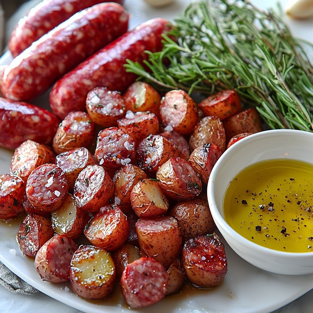 This Sausage and Potatoes recipe offers a hearty and flavorful meal perfect for any day of the week. Juicy sausages baked alongside tender, herb-seasoned Yukon gold or red potatoes create a comforting dish with a beautiful golden finish. Simple ingredients come together effortlessly in the oven, delivering a balanced combination of protein and vegetables that is both satisfying and easy to prepare.