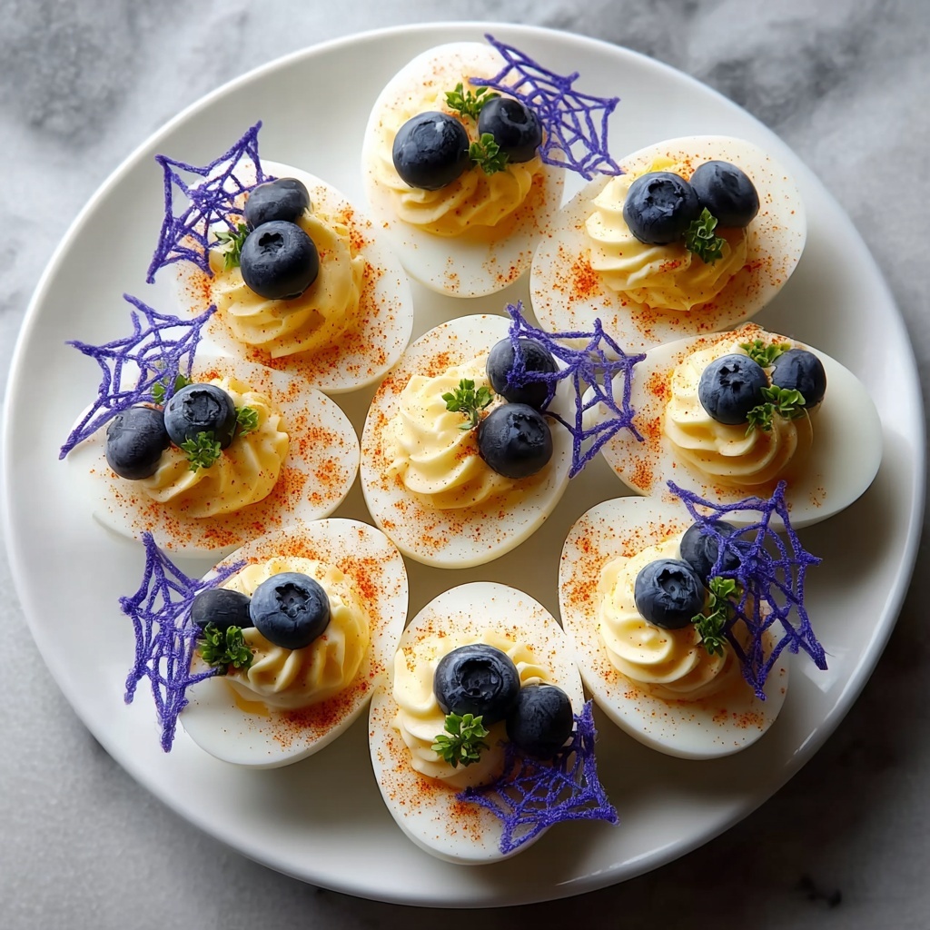 For an extra touch, try topping your Spider Web Deviled Eggs with a small sprig of fresh dill, parsley, or finely chopped chives. These garnishes add a burst of color and a fresh contrast to the creamy texture, enhancing both appearance and taste.