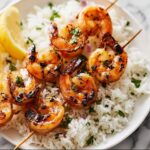 Place your shrimp skewers on the hot grill and cook for about 2 to 3 minutes per side, or until they turn opaque and develop a touch of char. Don’t forget to baste with the reserved marinade while grilling to keep the shrimp moist and extra flavorful.