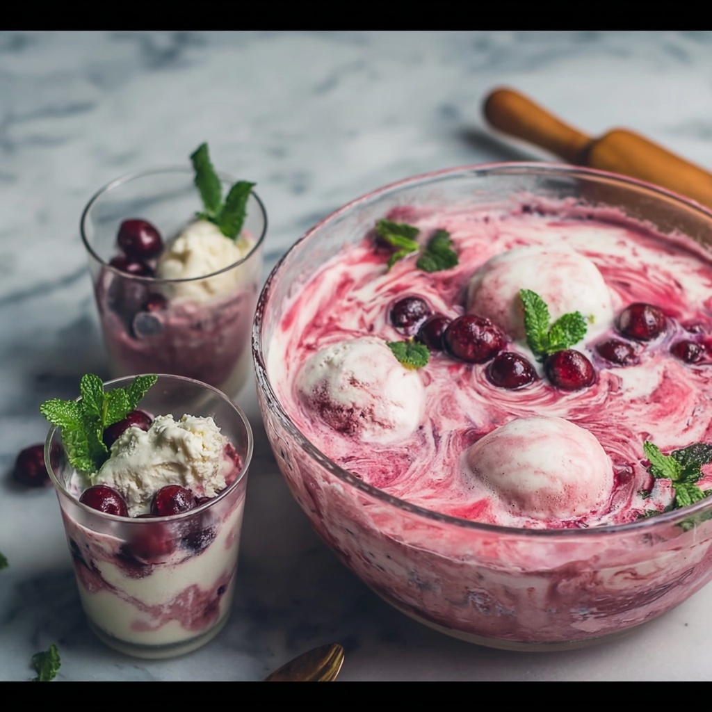 Garnishing your punch is where you can really showcase your creativity. Fresh mint leaves add a pop of green and a refreshing aroma that complements the cherry and vanilla flavors perfectly. Frozen cherries are both decorative and practical, chilling the punch without watering it down. A final dollop of vanilla bean ice cream on top invites immediate indulgence and elevates the presentation from casual to spectacular.